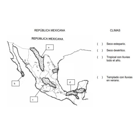 44.- Relaciona los climas con las zonas marcadas en el mapa: